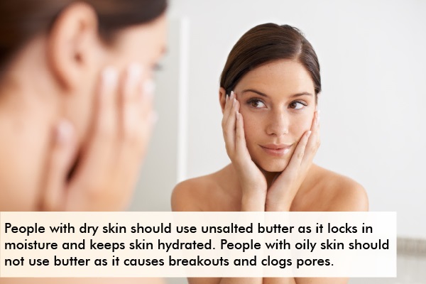 하지만, 피부에 버터를 정기적으로 사용하면 여성의 경우 여드름이 생길 수 있지만, 어린이의 경우 피부색을 개선할 수 있습니다. 피부가 건조하다면 버터를 사용할 수 있습니다.