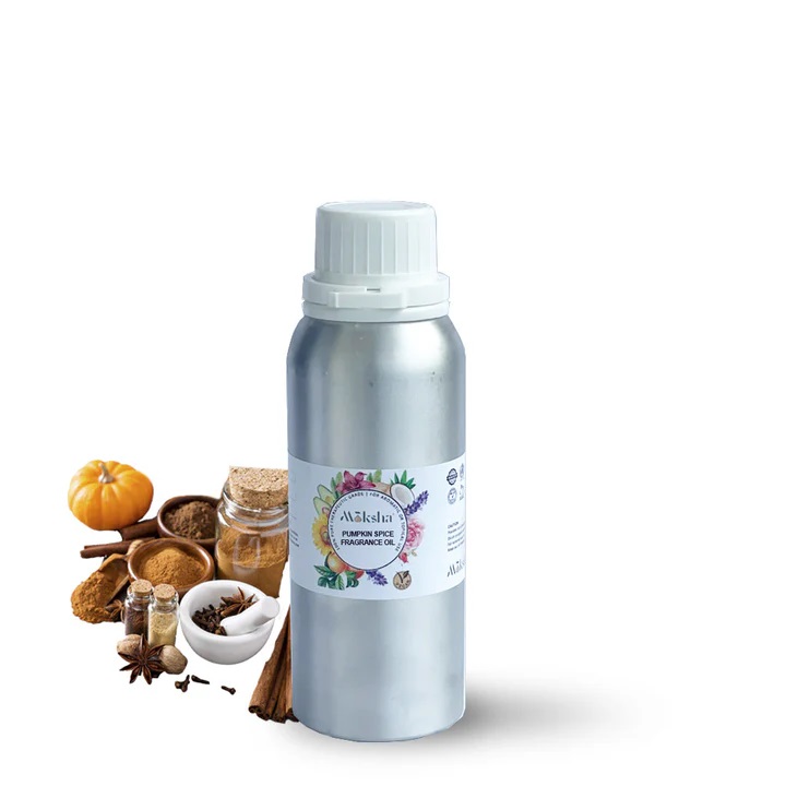 Moksha의 호박 스파이스 프래그런스 오일은 30ml, 100ml, 250ml, 1리터부터 다양한 팩 크기로 제공됩니다.