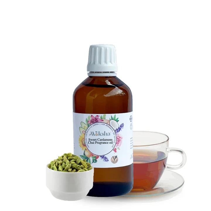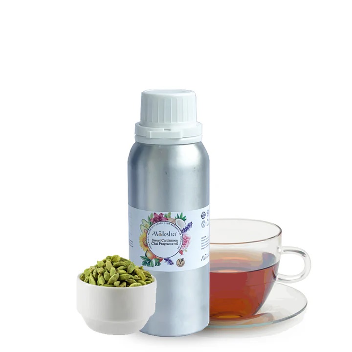 Moksha의 Sweet Cardamom Chai 향수 오일은 30ml, 100ml, 250ml 및 1리터를 포함한 다양한 팩 크기로 제공됩니다.