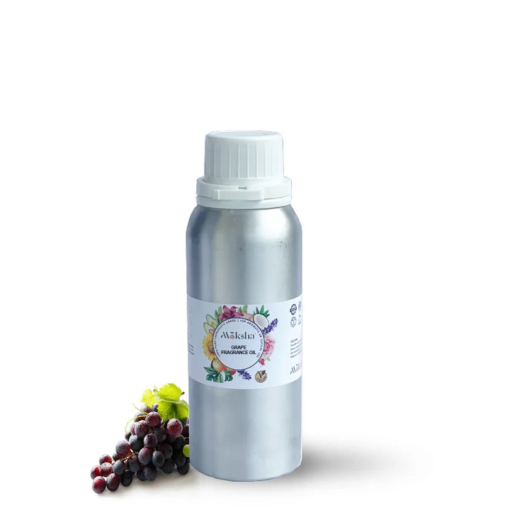 Moksha의 포도 향 오일은 30ml, 100ml, 250ml, 1리터부터 다양한 팩 크기로 제공됩니다.